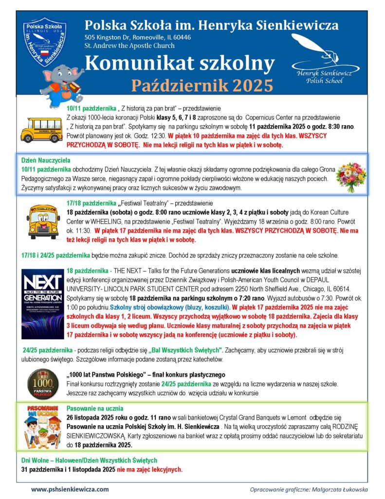Komunikat szkolny – Październik 2025