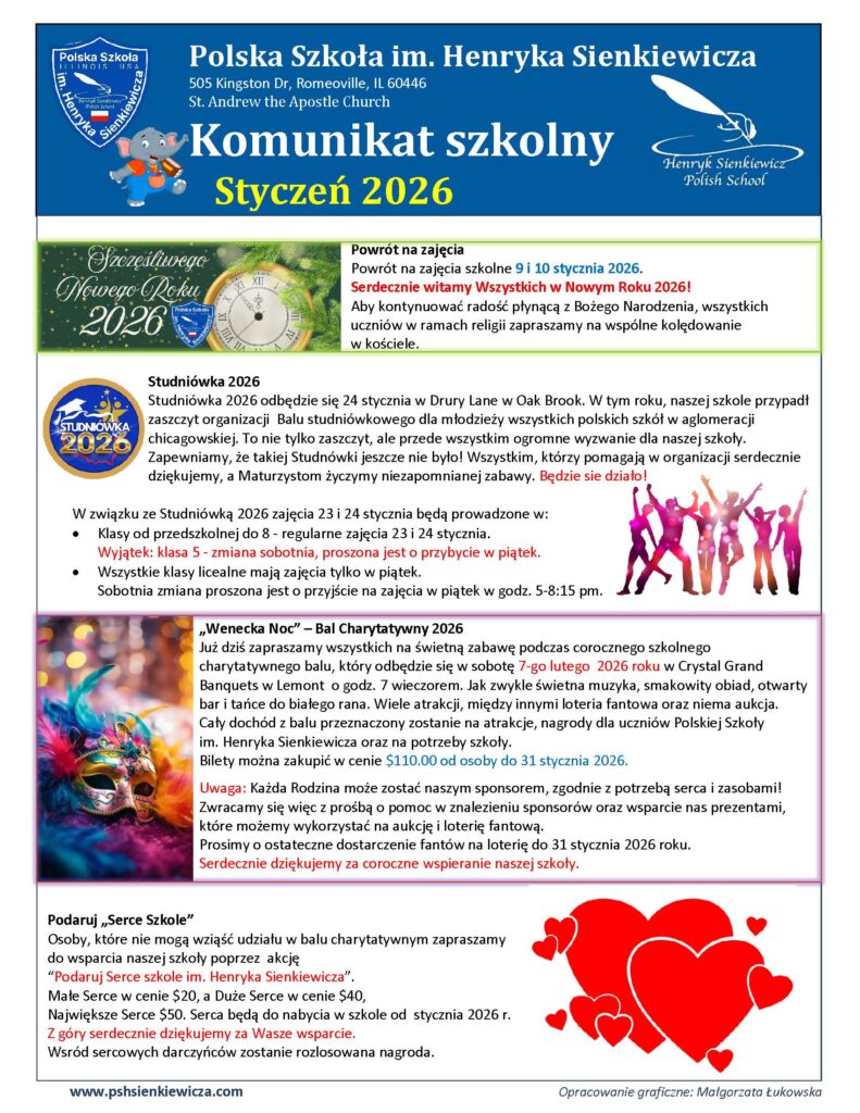 Komunikat szkolny – Styczeń 2026